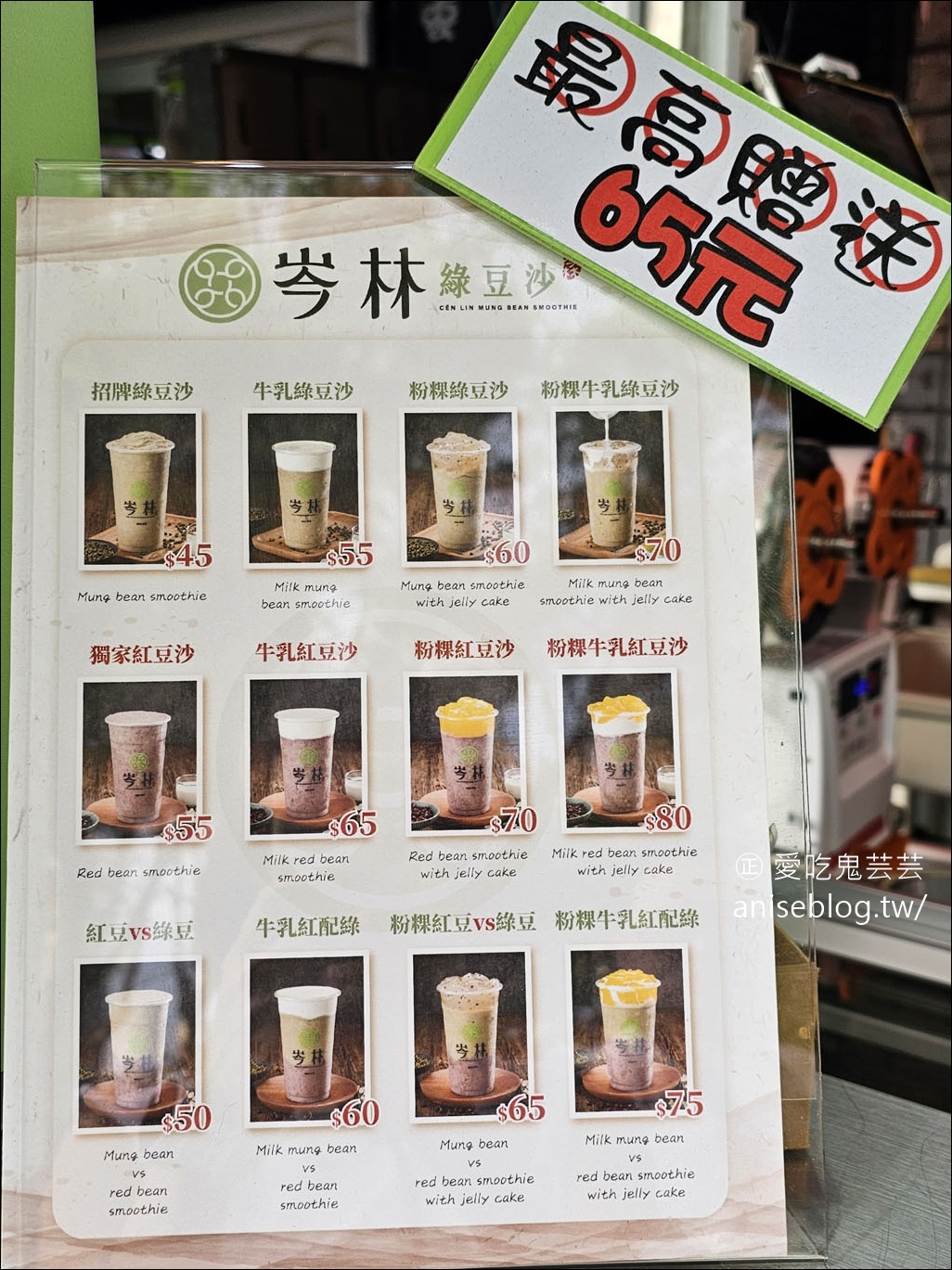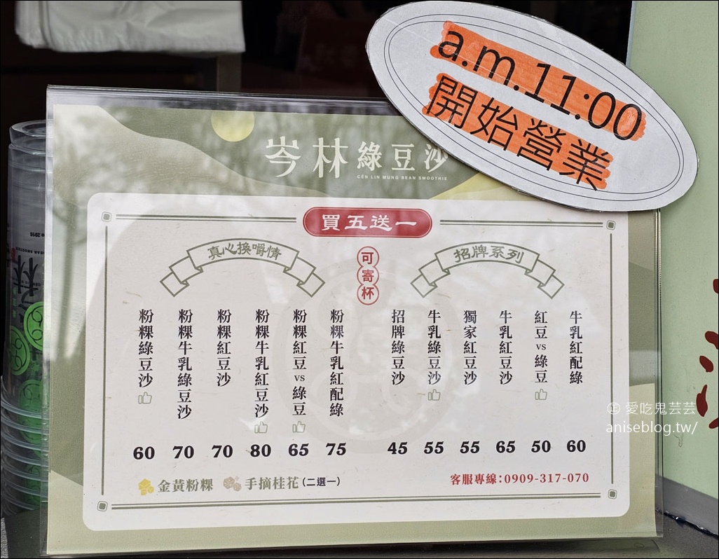 岑林綠豆沙的菜單如下